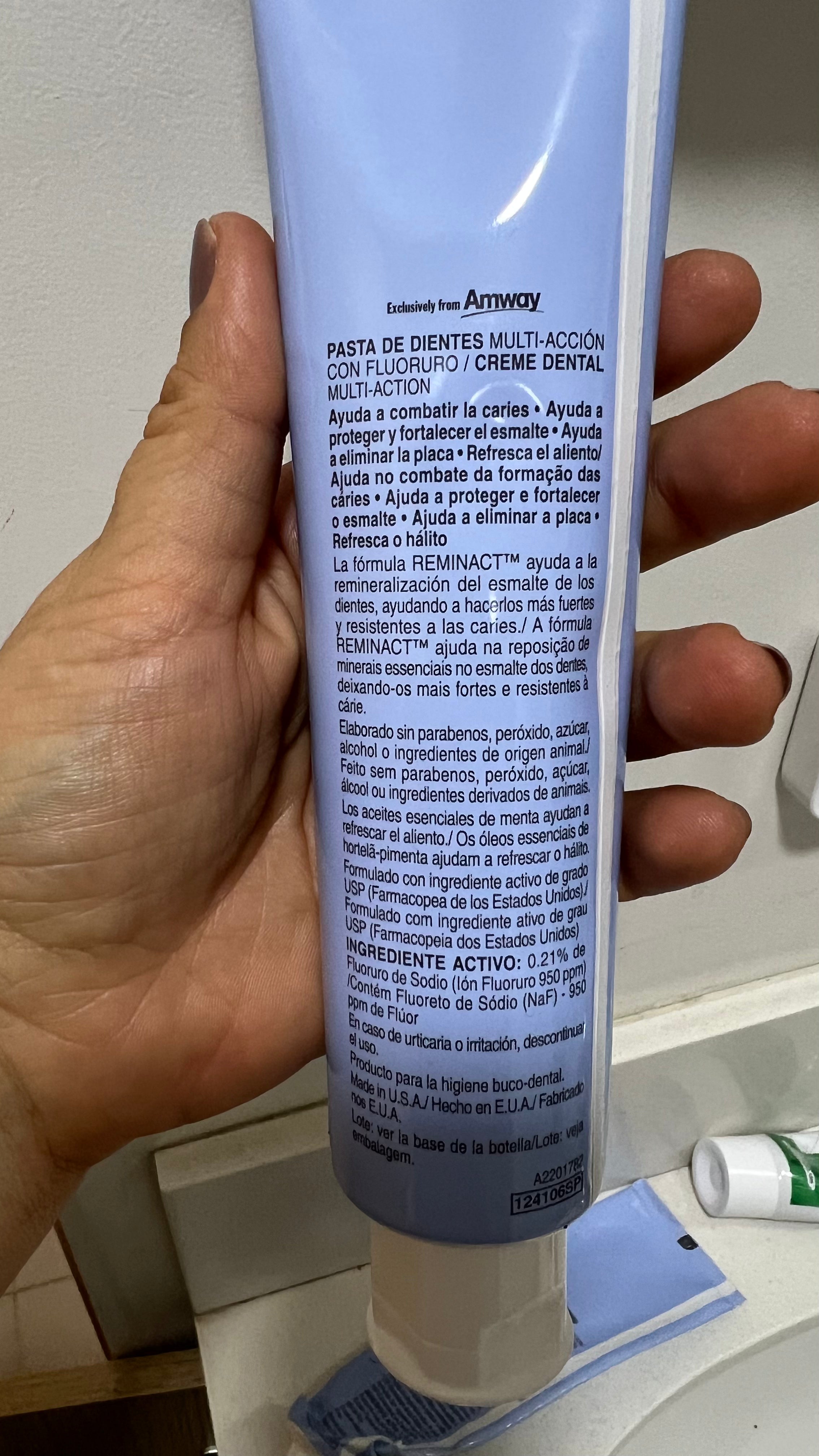 - El agente de fluoración de este producto es un elemento que ayuda a prevenir las caries, pero no reemplaza el uso de un cepillo de dientes ni del hilo dental.