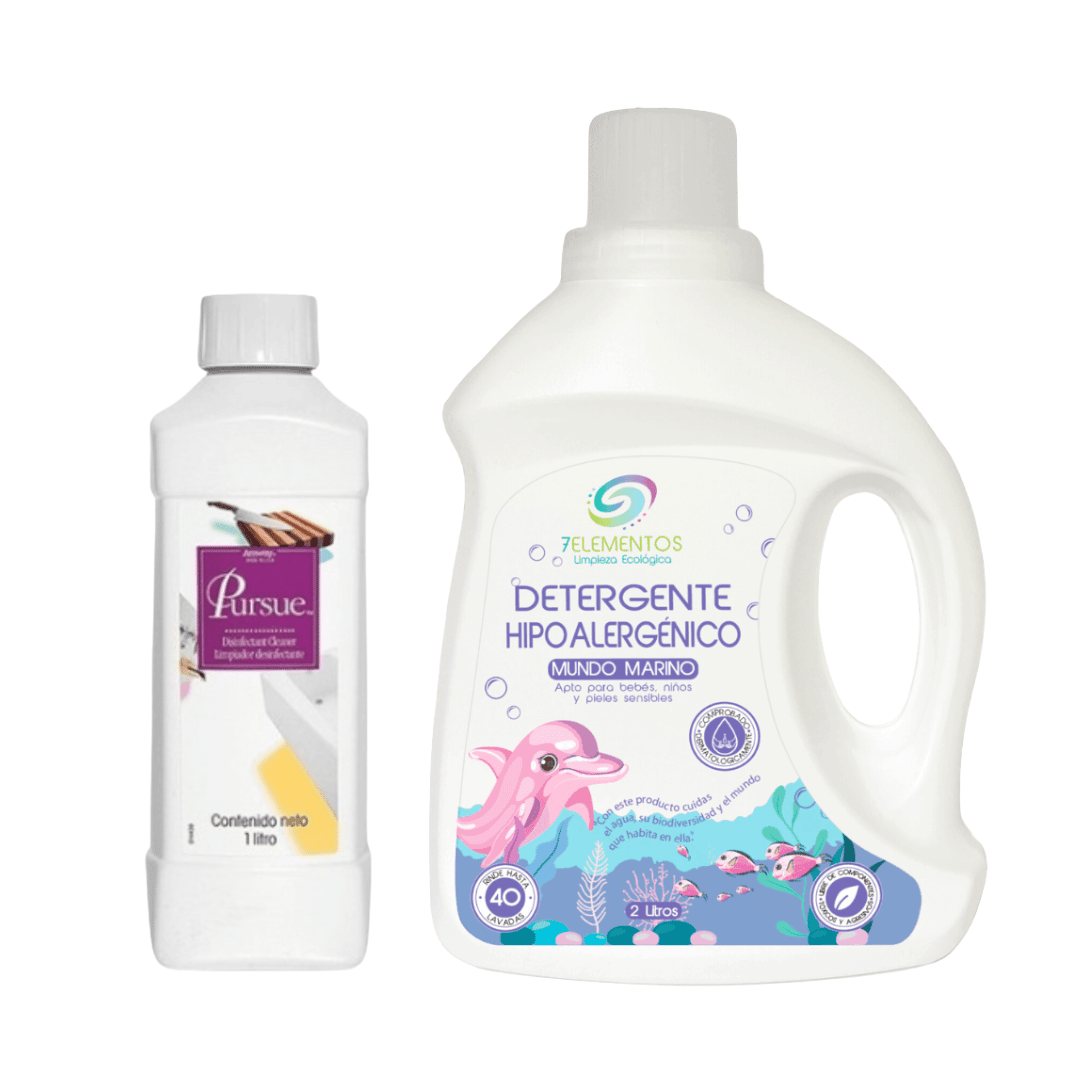 7 ELEMENTOS – Kit Desinfección | Detergente 2L + Desinfectante Pursue