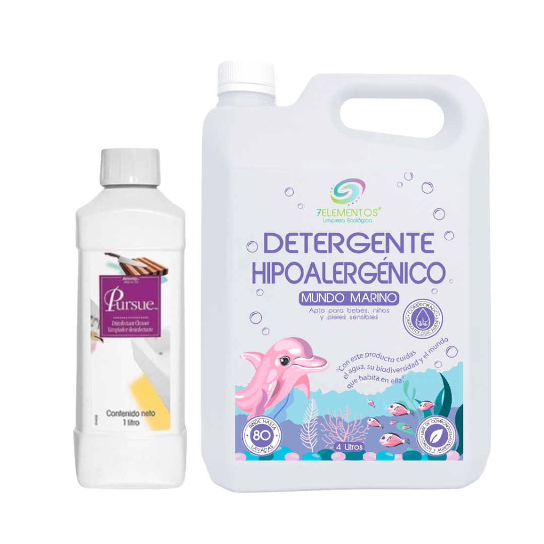 7 ELEMENTOS – Kit Desinfección | Detergente 4L + Desinfectante Pursue
