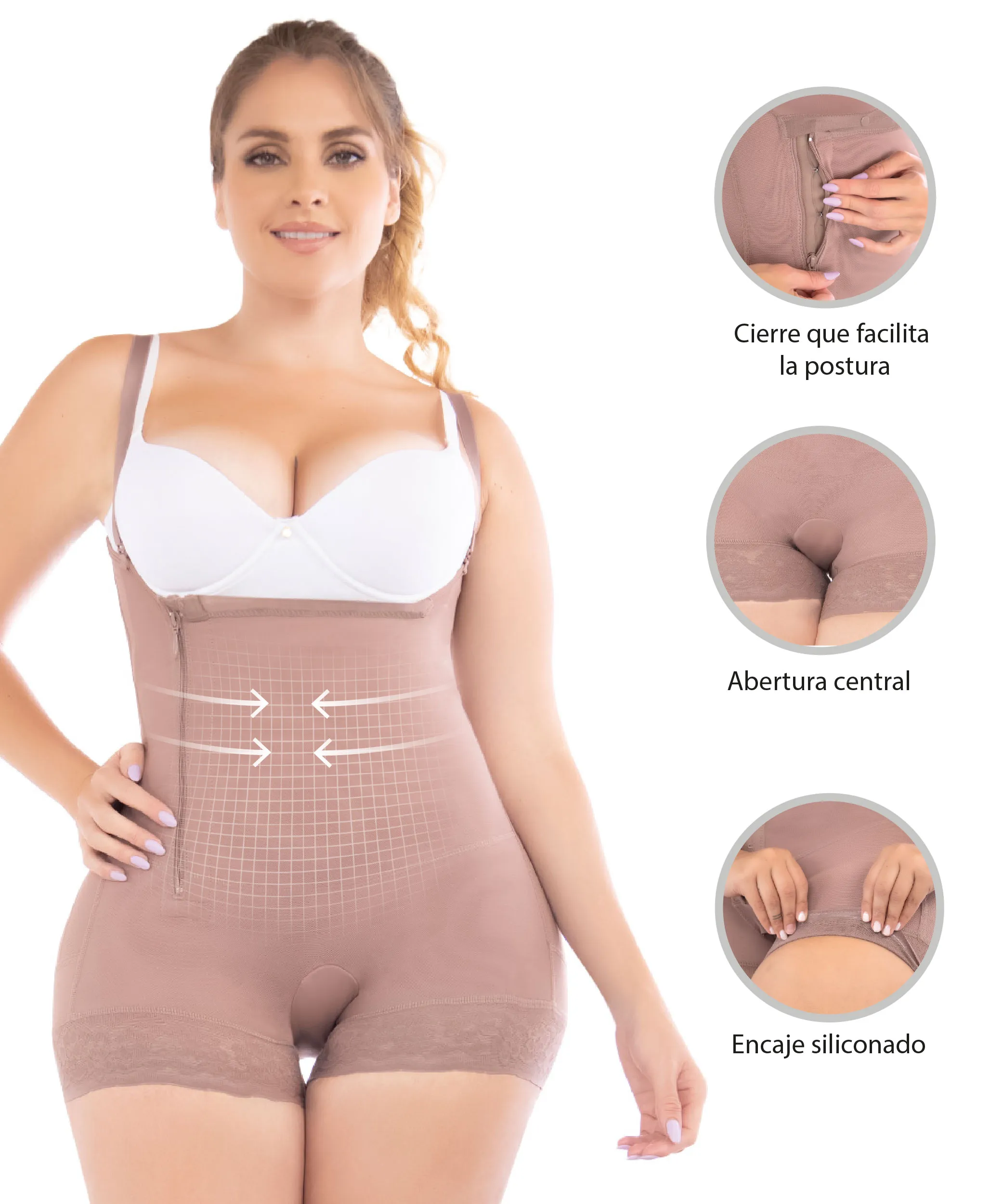 Su diseño tipo short moldea y define caderas, cintura, abdomen, espalda y glúteos, ayudando a reducir la inflamación y a mejorar la circulación sin comprometer tu comodidad.