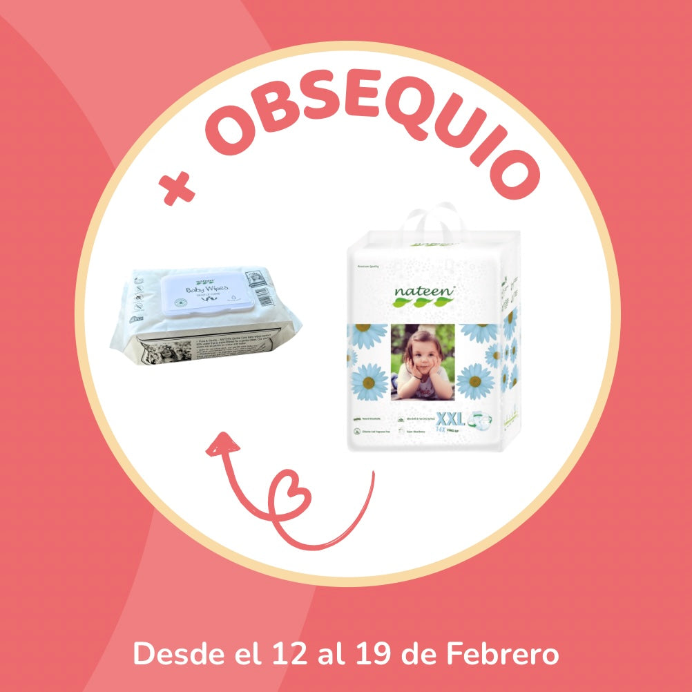 Además, por tiempo limitado, recibe GRATIS 1 paquete de pañitos húmedos Nateen x80, perfectos para limpiar suavemente la piel sensible de tu bebé