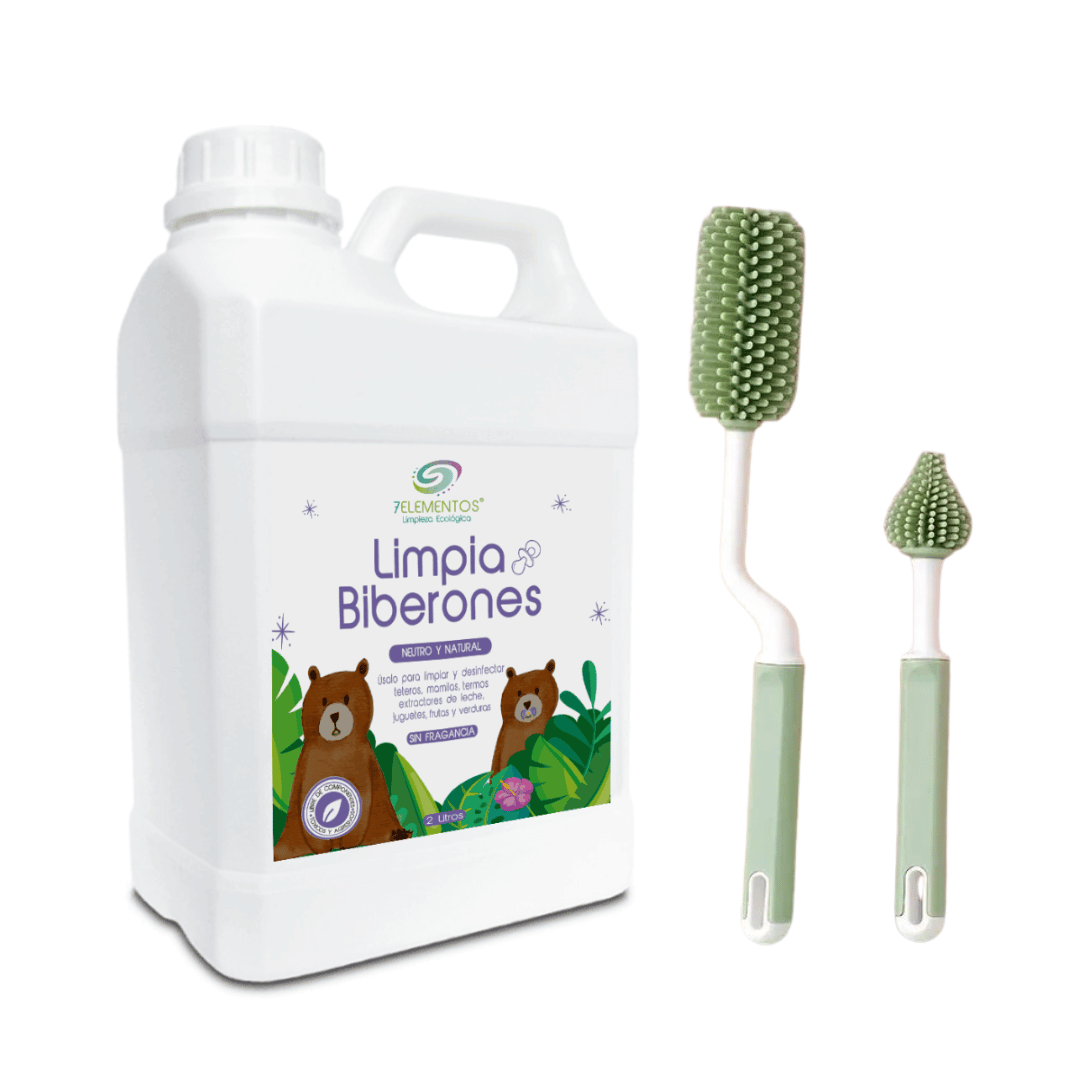 El Kit Biberones Limpios 7 Elementos es la solución ideal para mantener los biberones, tetinas y accesorios de tu bebé impecables, libres de residuos y seguros para su uso diario. Incluye un limpia biberones de 2 litros, formulado para remover grasa y restos de leche sin irritar la piel, junto con un cepillo de silicona flexible y duradero que llega fácilmente a cada rincón.