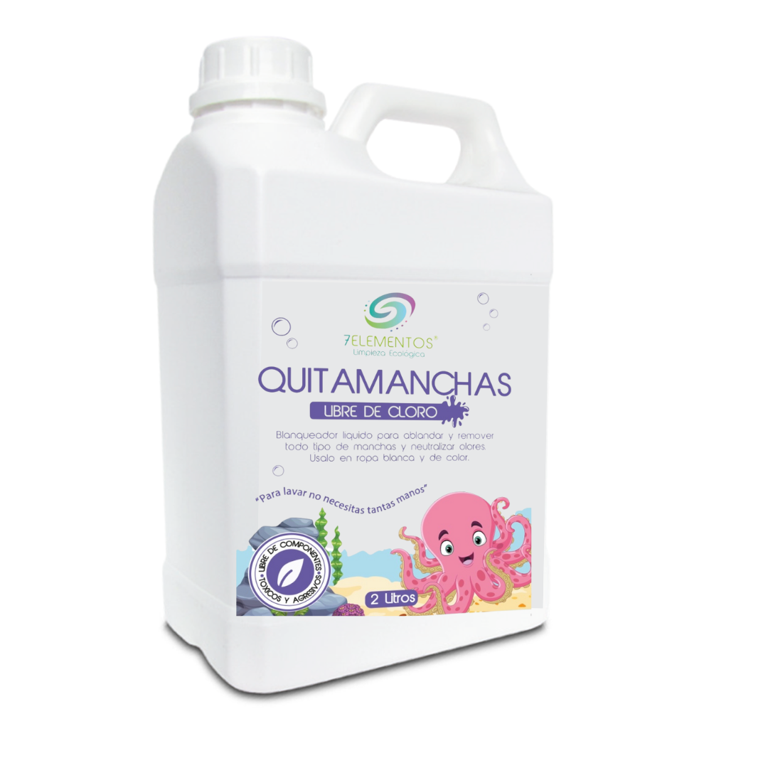 Nuestro quitamanchas líquido sin cloro está diseñado para ablandar y remover incluso las manchas y olores más difíciles. Es seguro para ropa blanca, de color y también es ideal para limpiar absorbentes y pañales blancos, manteniéndolos impecables sin dañarlos. Ecológico, biodegradable y libre de componentes tóxicos, su fórmula es suave con las telas pero implacable con las manchas.