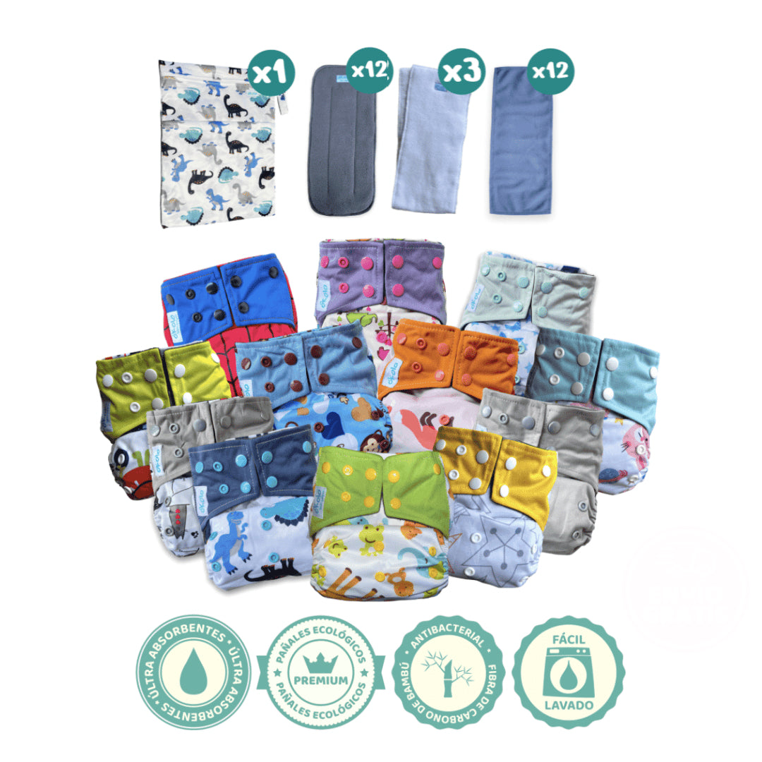 - Ajuste Cómodo y Versátil: Diseñados con un sistema de ajuste de broches, estos pañales se adaptan al crecimiento de tu bebé y son ideales tanto para el uso diario como para la natación. Su diseño de bolsillo facilita el uso de absorbentes o usarlos de sobre poner, manteniendo a tu bebé seco y cómodo durante horas.