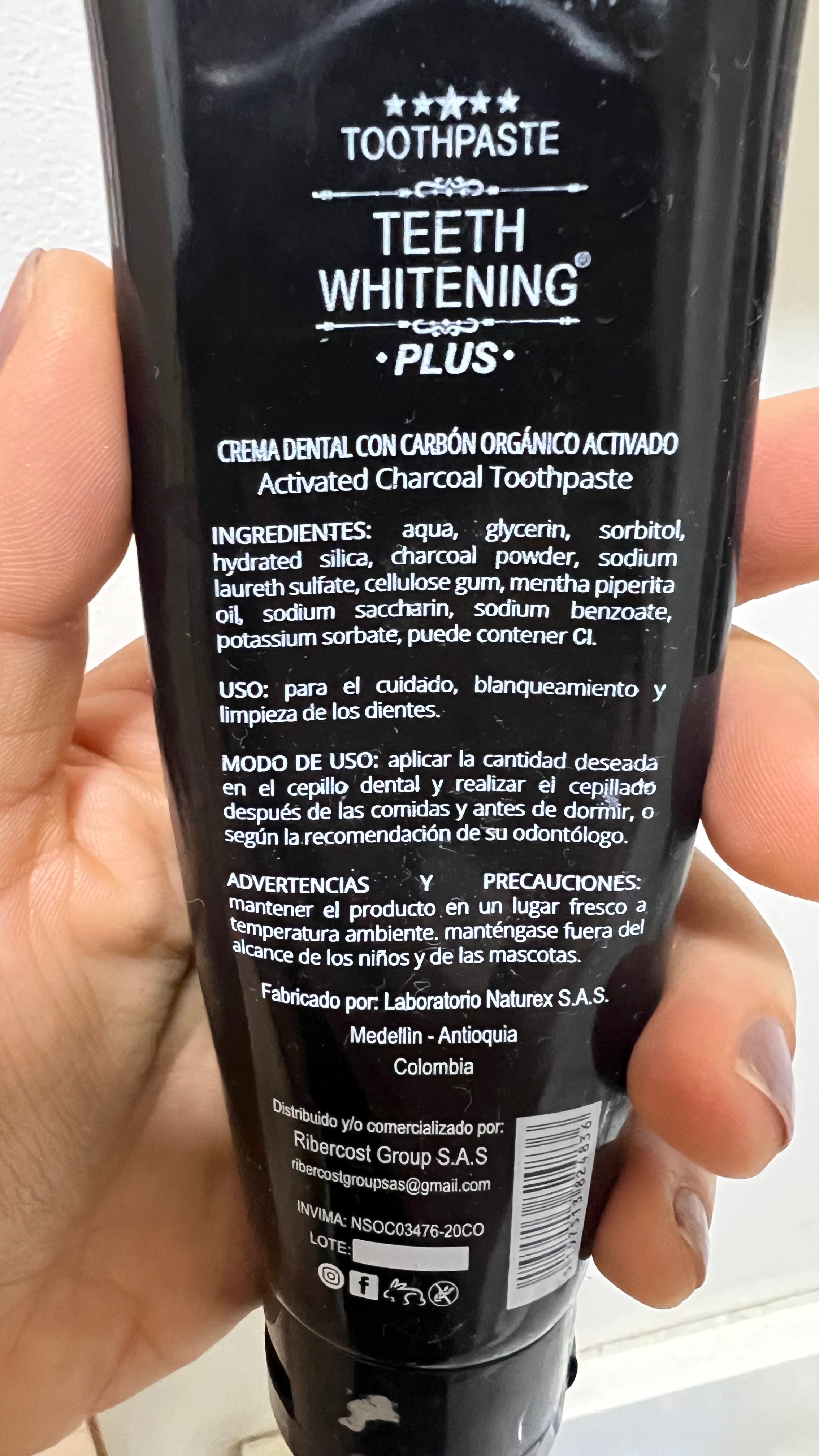 TEETH WHITENING Crema Dental de Carbón Activado Sin Flúor
